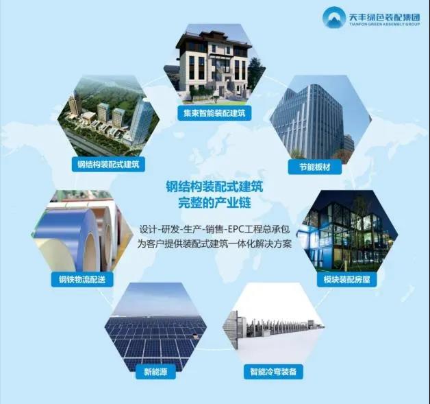 以绿色建造、智能制造新模式打造钢结构装配式超低能耗建筑产业基地,天丰形成了集术智能装配低多层建筑结构及围护产品成套装备体系,以集术为芯片,服务低多层钢结构装配式建筑产业高质量发展,聚焦服务钢结构装配式建筑市场。