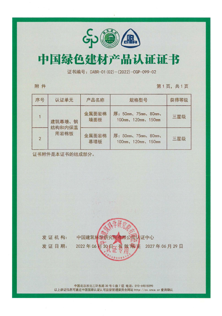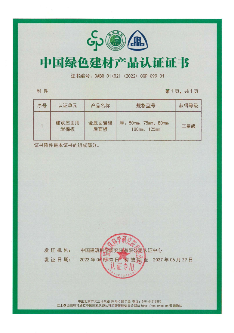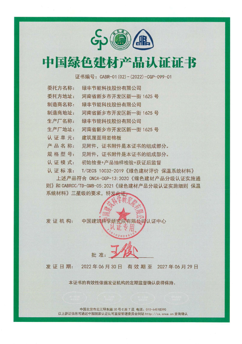 近日,绿丰节能科技股份有限公司金属节能围护系统产品实力荣获“中国绿色建材产品认证”三星级认证,该级别为“中国绿色建材产品认证”分级认证中的最高等级。