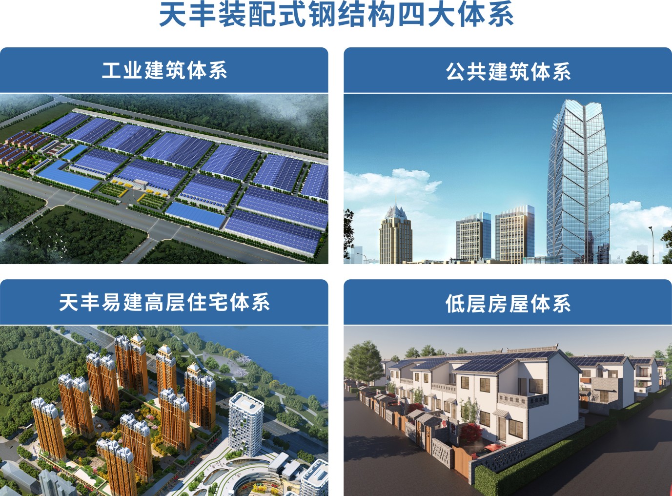 天丰作为国家装配式建筑产业基地,河南省钢结构龙头企业,不断创新技术和优化体系,构建了天丰钢结构工业建筑体系、钢结构公共建筑体系、钢结构住宅体系及钢结构低层房屋体系等基础设施建设体系,可实现建设产业园区各功能分区的全覆盖,从工业厂房、研发大楼,办公楼及其它配套设施,满足园区兼具生产、办公、公寓和商业等综合功能,实现园区布局合理、功能完备的生产经营空间需求。