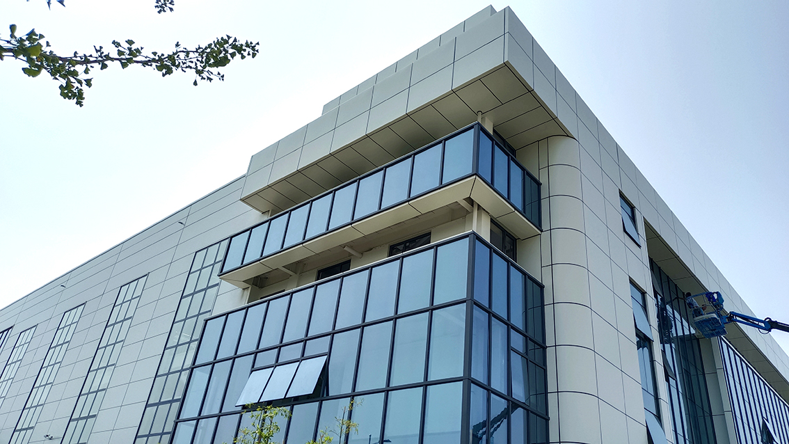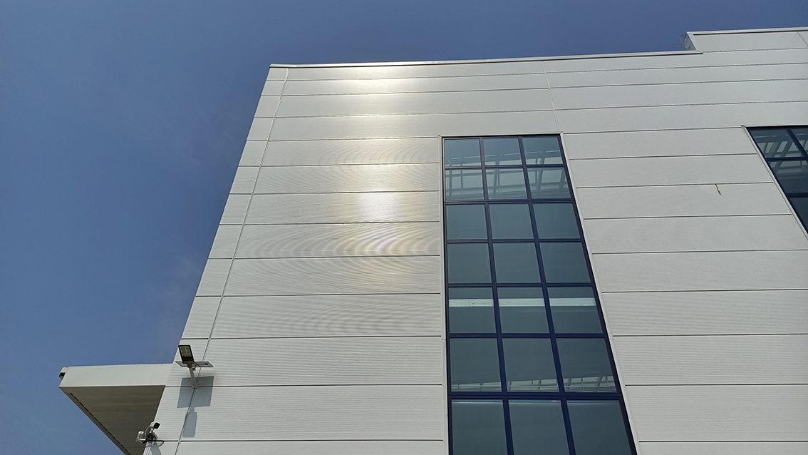 金属面材表面经过电晕技术处理后,更具光泽质感和耐久性,高品质的外立面效果让建筑在周围环境中更加引人注目。