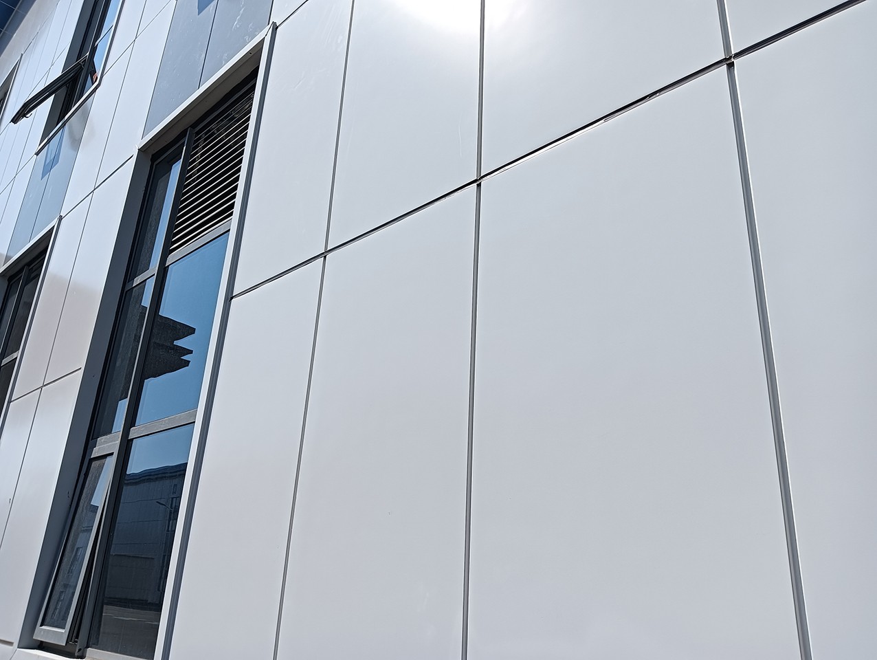 项目采用四面企口,竖排安装形式,精度要求高,再搭配竖排整体转角安装,让建筑在空间的表达上沉稳有力,清晰而简洁的条形板系统,通透有序优雅,恰到好处的彰显现代建筑美学。
