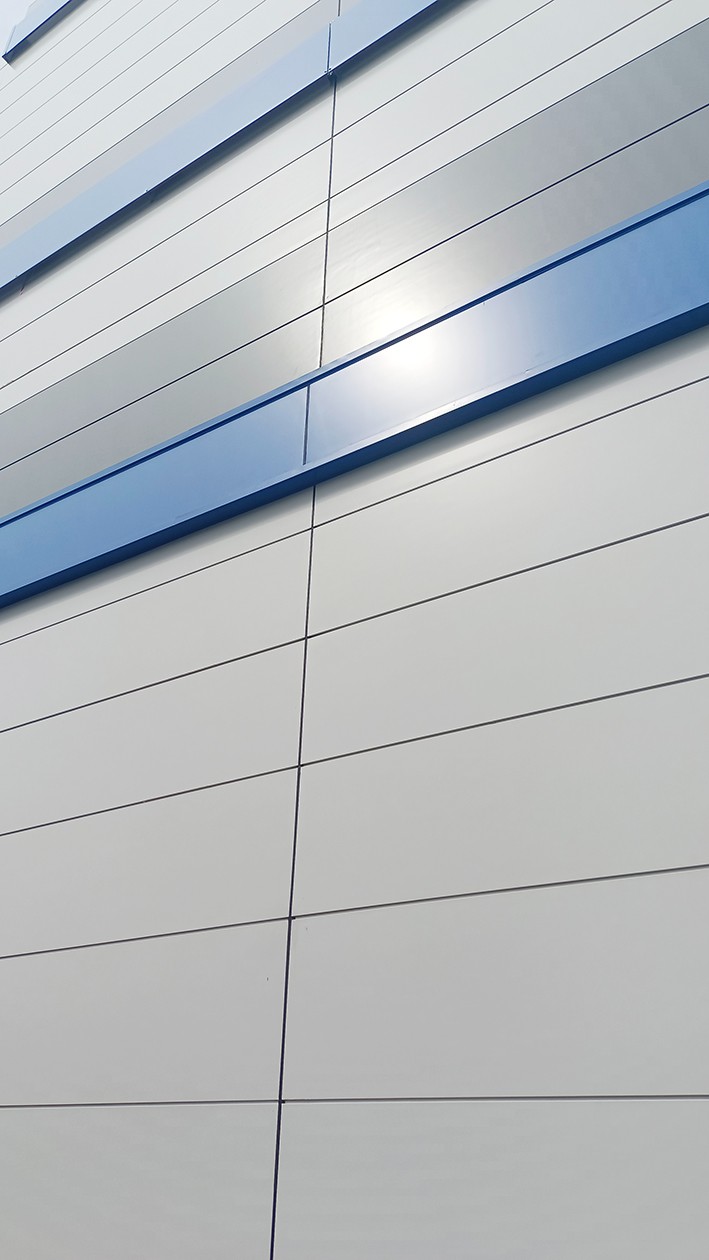 天丰金属幕墙板通常采用铝镁锰等金属材料制成,表面氟碳涂层使其具有良好的耐腐蚀、耐磨损、抗紫外线等特性,轻质、高强度的材料,不仅防火防潮、抵御酸雨盐雾的侵袭,还能提升建筑的安全性和稳定性。