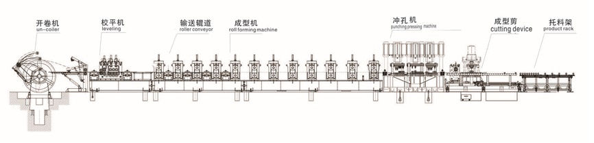 开卷---校平----成型---冲孔---切断---托料架