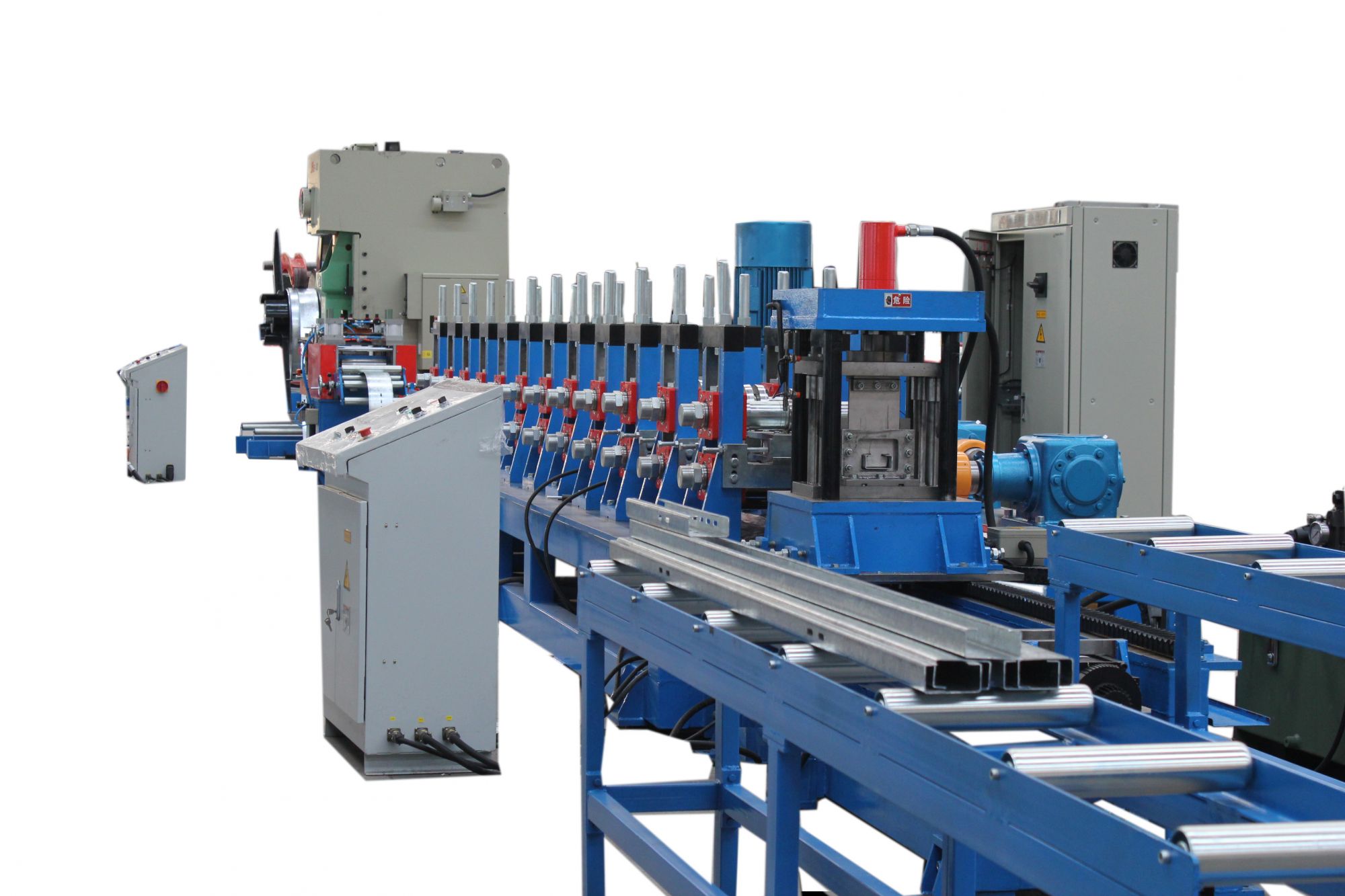 通过切换可生产多种截面、不同规格支架型材。成品直线度好。该线自动化程度高,速度快,生产线速度:10米/分钟。
